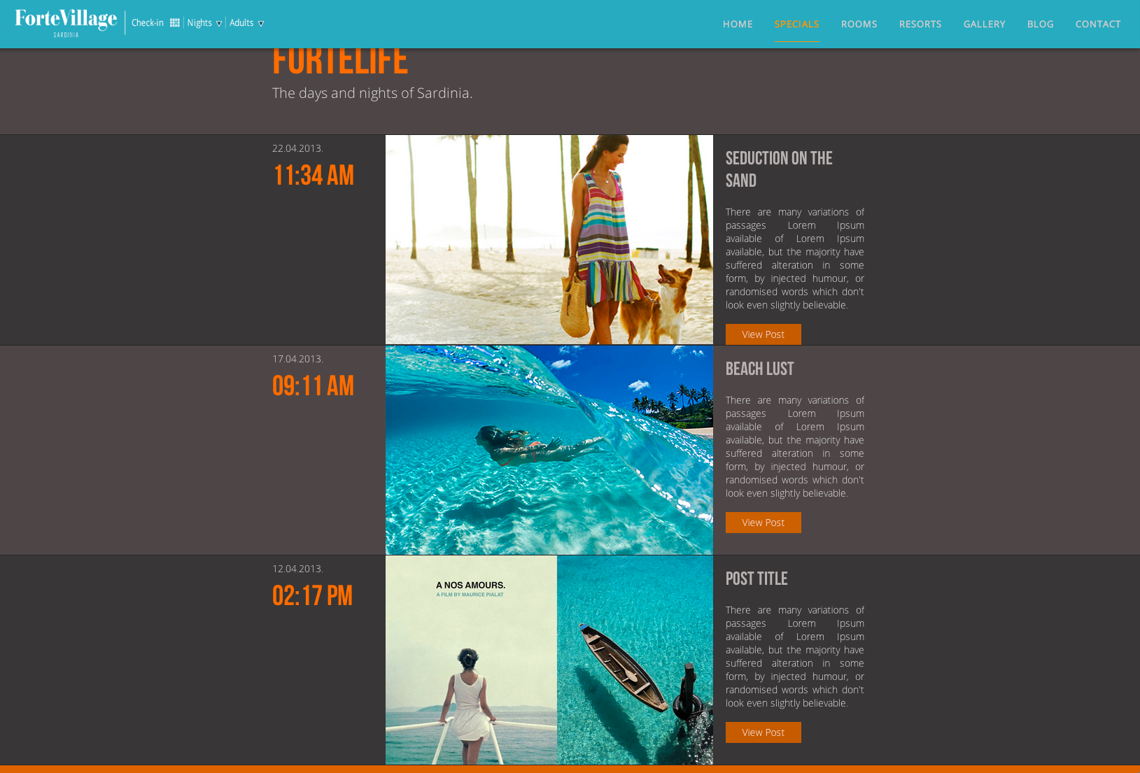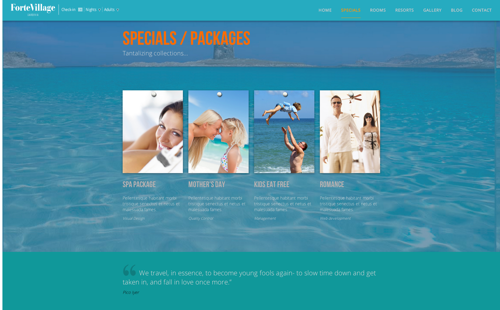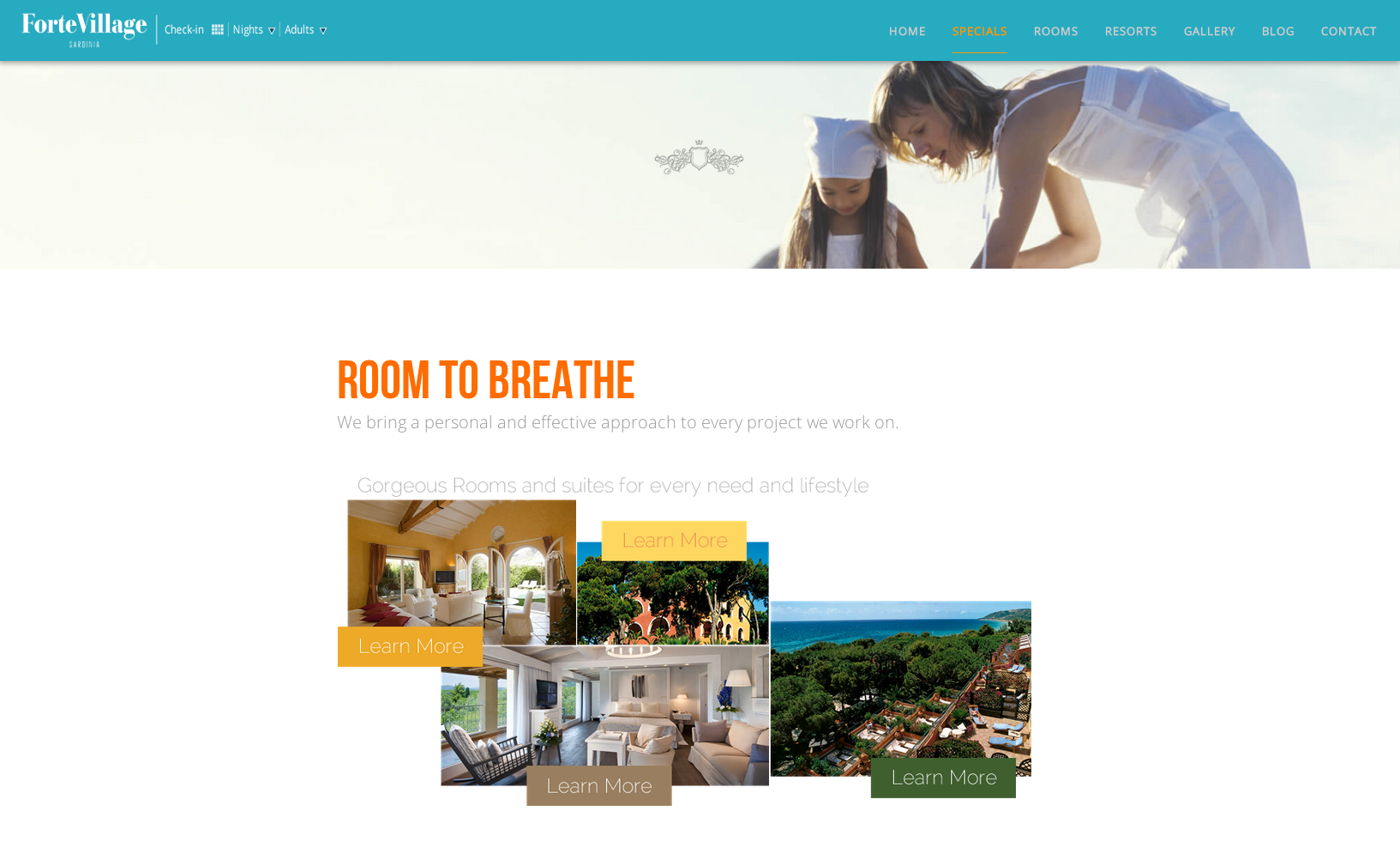 Design for the long, responsive, parallax-enabled home page for Forte Village.